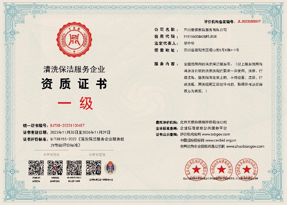 以愛呵護,以德筑家。2023,值此金秋,德陽市首家致力于以國際標準清潔服務,為高品質客戶打造國際品質的健康居家生活環境的全新品質家庭服務公司——愛德家政公司,品質啟航!對標國際,升級模式筑就生活品質 愛德家政公司引入了代表世界先進清潔標準的澳洲BEBRITE原版國際清洗技術系統,該系統包含54種專業清潔工具、122種自有知識產權清潔產品、300多種家居環境物件表面的清潔方法,惠及澳洲十萬家庭。作為德陽市當前唯一授權機構,愛德家政將為廣大客戶提供與悉尼市政廳、2000年悉尼奧運會、好萊塢影后同款的清潔服務,全方位、無死角地在家庭保潔、清洗服務項目中,保障全屋環境的安全、環保、健康、無損。精英團